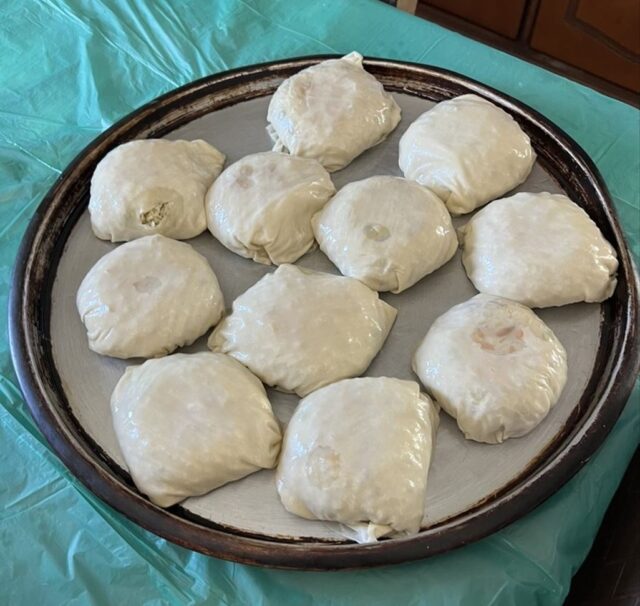 次にメインディッシュのUziを作りました。Uziとは、お肉ご飯をパイ生地で包み、オーブンで焼いて作る料理です。今回はパイ生地で包みましたが、包まずにご飯のままで食べる場合もあります。