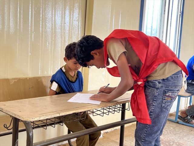 KnKでは毎年、7月〜8月の夏休みの期間中に「夏季アクティビティ」を実施しています。活動場所はザアタリ難民キャンプ内にあるKnKが長年活動を実施している学校で、家以外の場所でも学び、楽しめる機会を子どもたちに届けることを目的としています。日本の学校で行われている「縦割り班活動」を取り入れ、学年を超えたチームをつくり、チームをベースとしたアクティビティを行っています。